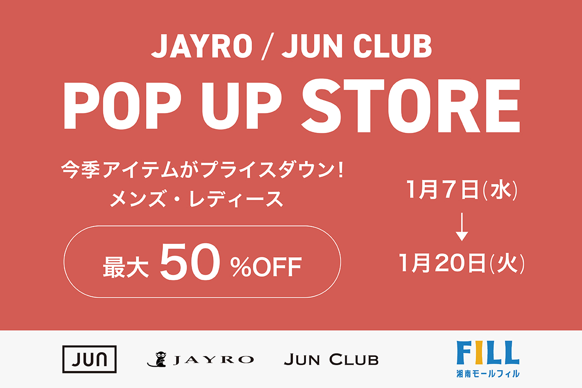 【最大50%OFF】JAYRO/JUN CLUB 期間限定POP UP STORE|湘南モールフィル